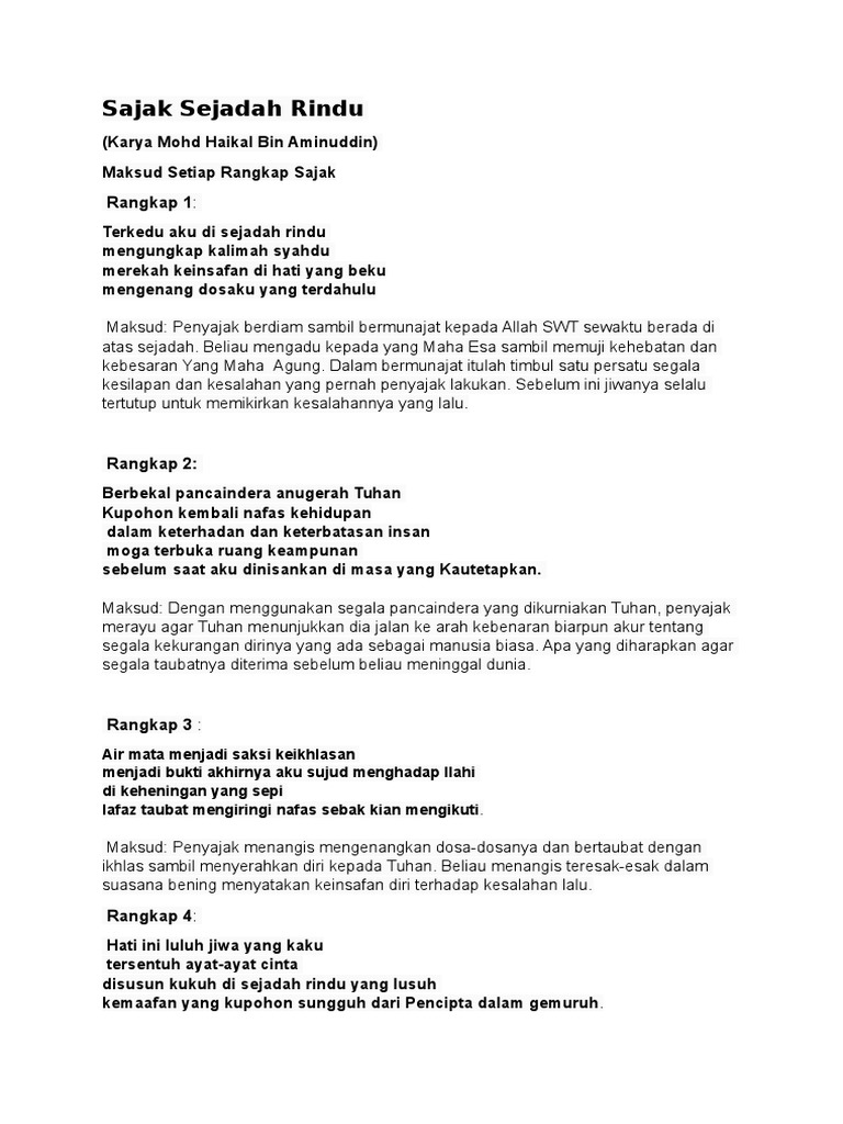 Sajak Sejadah Rindu Tingkatan 5 Otosection